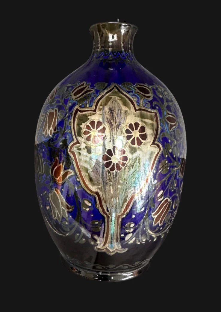 Pilkington’s Royal Lancastrian Vase of Bulbous Form with an elegant neck, decorated with Floral Garnitures surrounded by Stylised Flowers by William Mycock